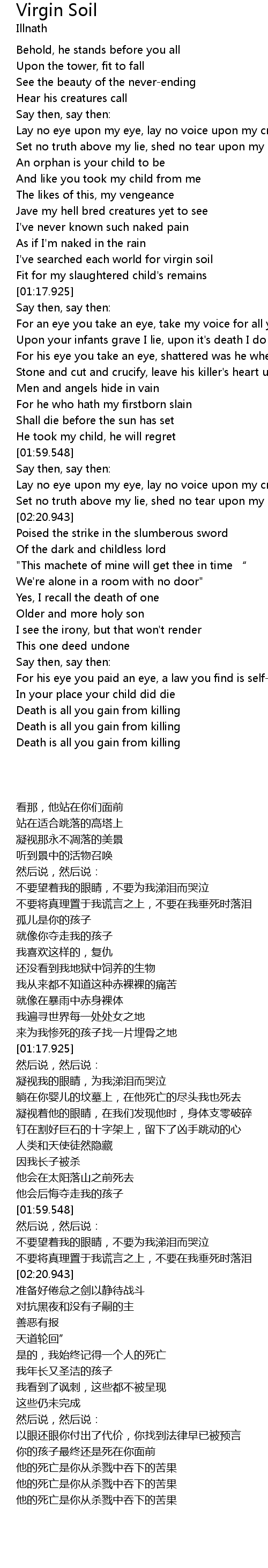 | [01:36.262] | Upon your infants grave I lie, upon it's death I do my dying |
