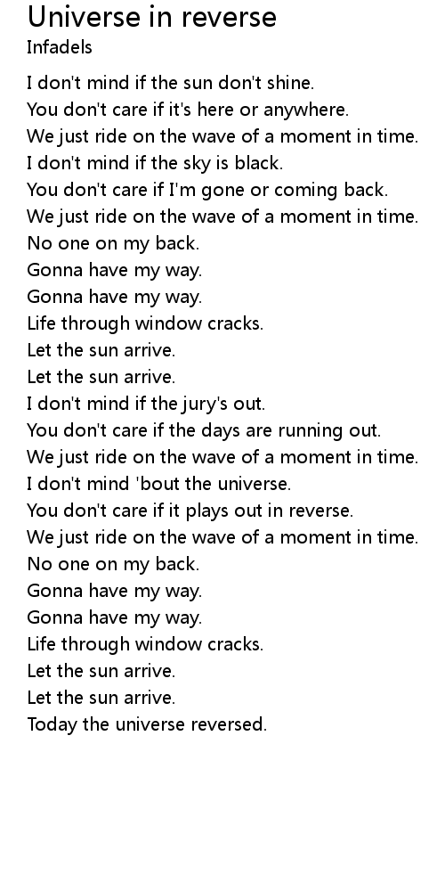 I don't mind 'bout the universe. |
