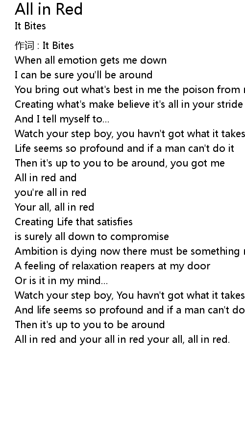| All in red and your all in red your all, all in red. |