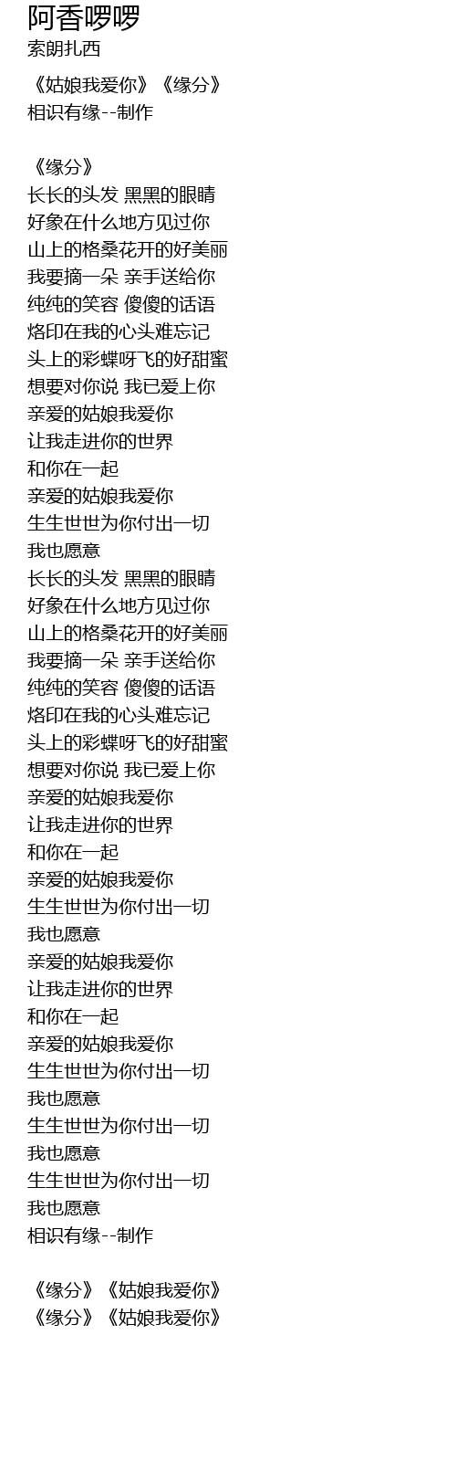 | 《缘分》《姑娘我爱你》 |