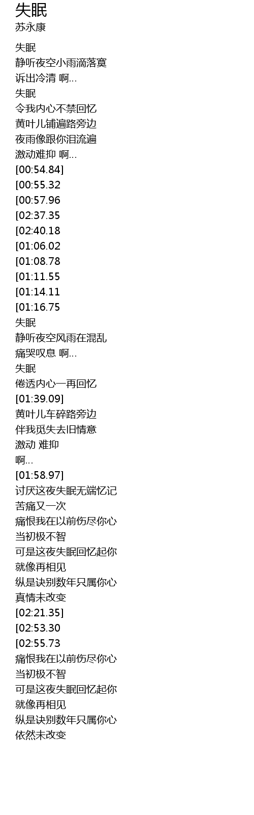 | [02:32.28][00:55.32] | 讨厌这夜失眠无端忆记 |