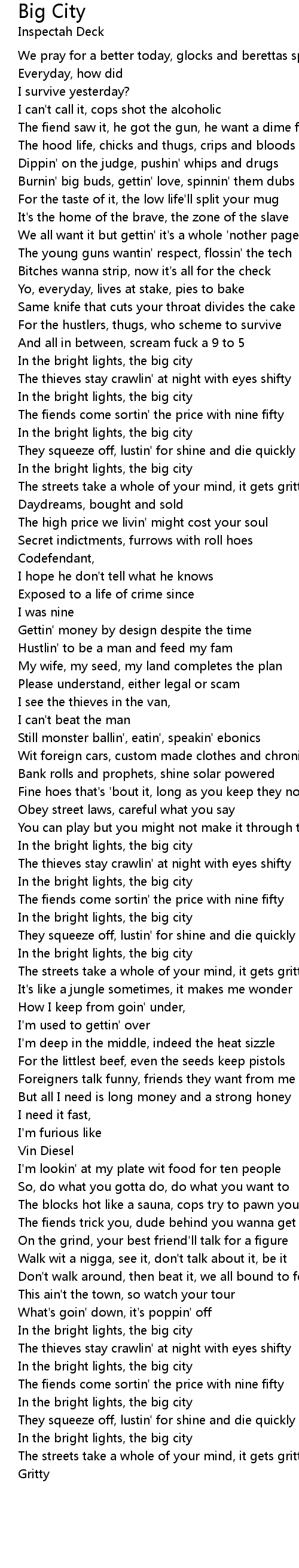 The streets take a whole of your mind, it gets gritty |