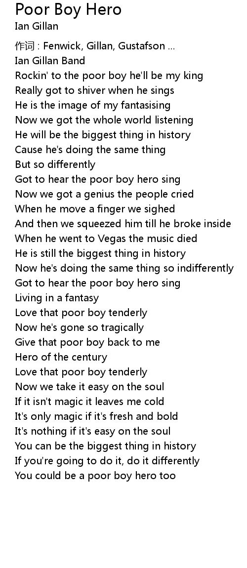 | 歌曲 | Poor Boy Hero |