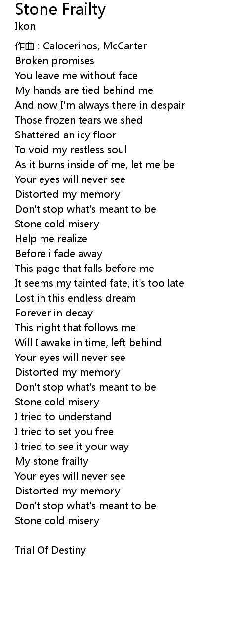 | 歌曲 | Stone Frailty |