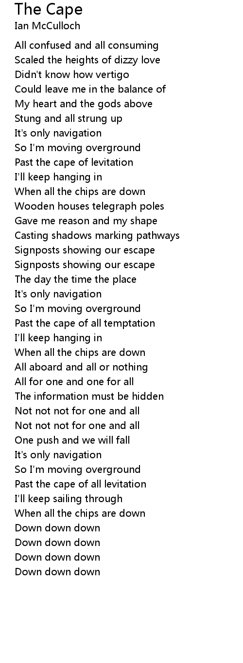 Past the cape of all levitation |