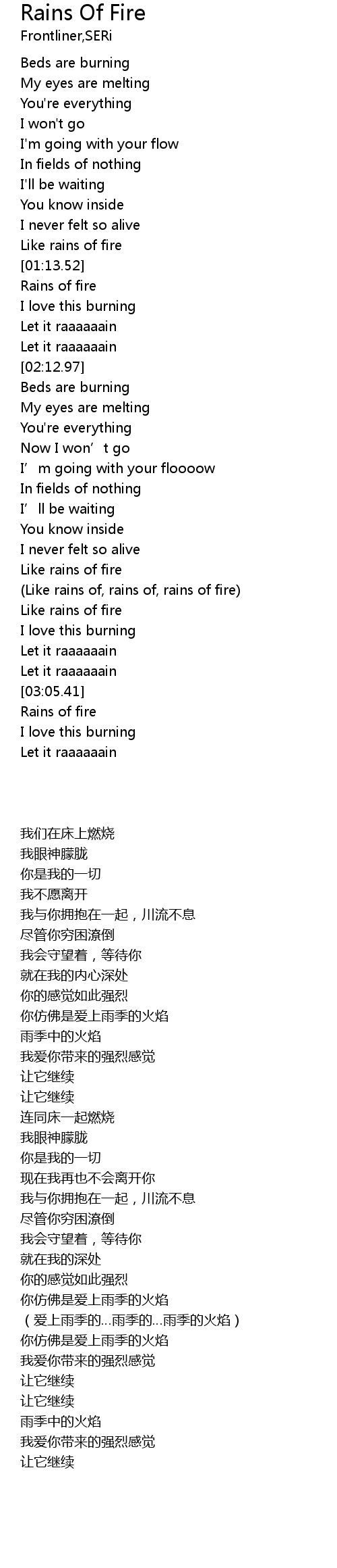 | [01:22.53] | Rains of fire |