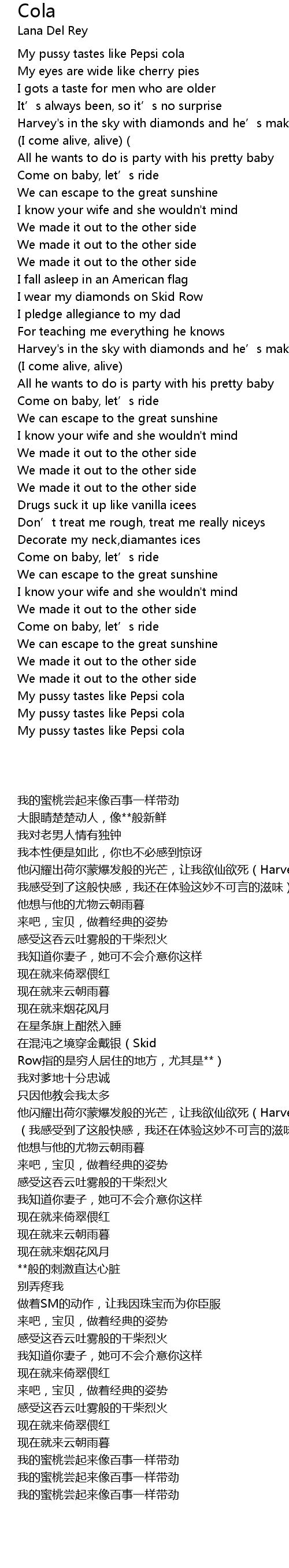 | [03:52.12] | My pussy tastes like Pepsi cola |