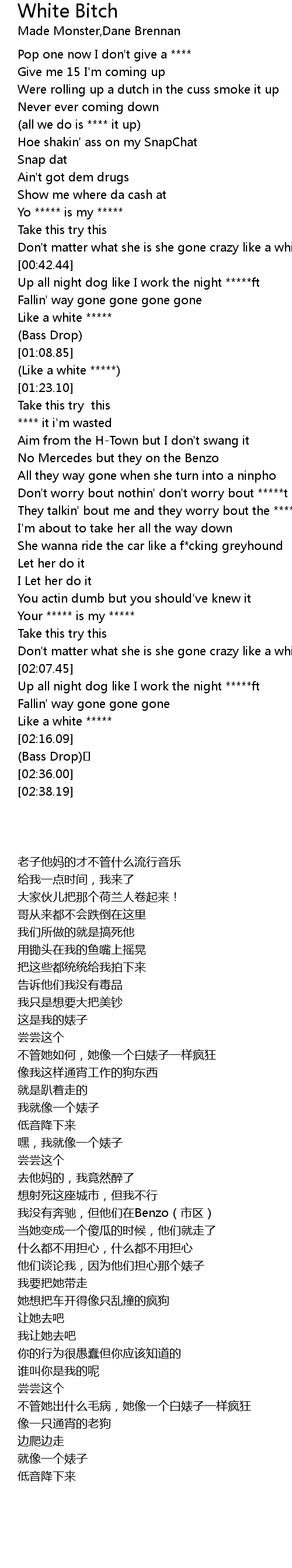 | [02:04.12] | Don't matter what she is she gone crazy like a white ***** |