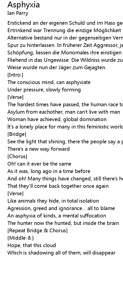 | Erstickend an der eigenen Schuld und im Hass gegenü ber ihres Gleichen | |