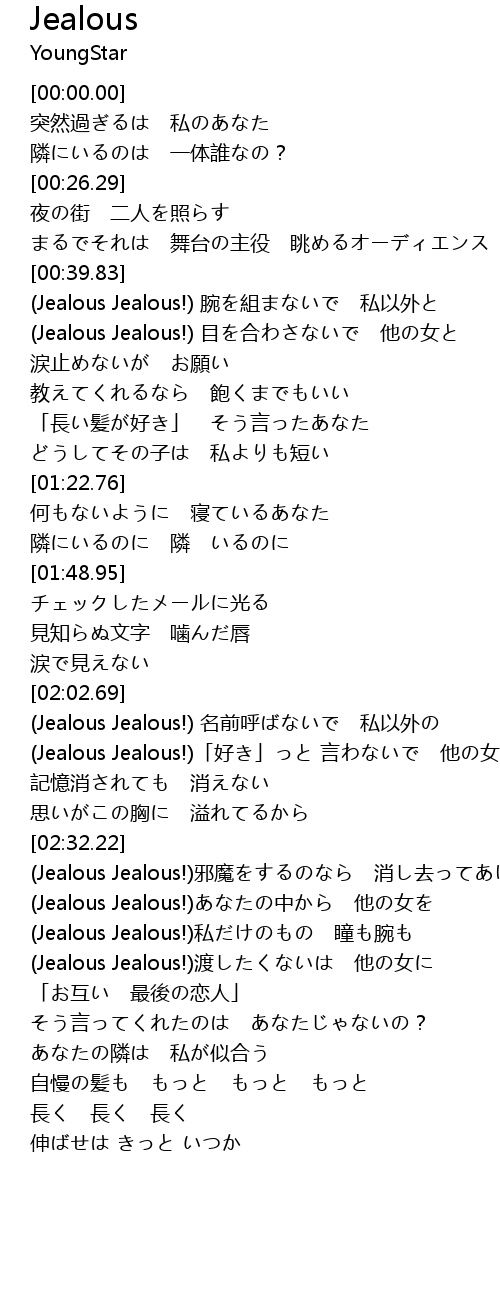 | [02:52.07] | (Jealous Jealous!)あなたの中から 他の女を |