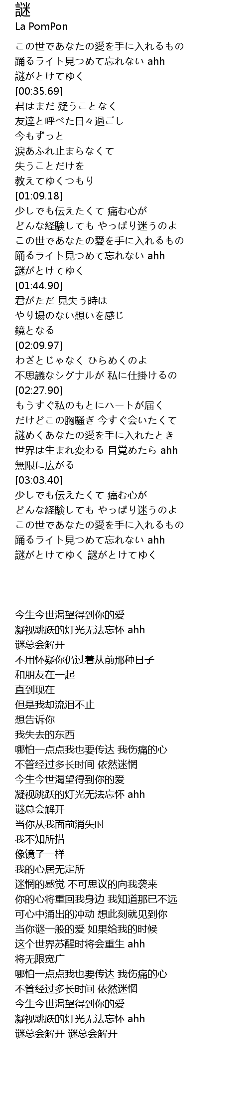 | [04:00.37] | 謎がとけてゆく 謎がとけてゆく |