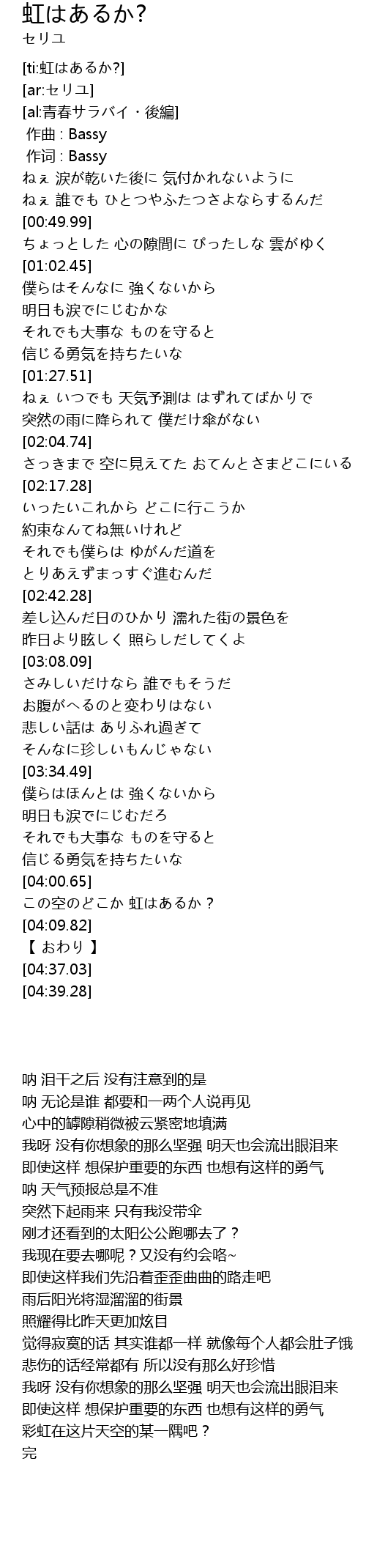 | [04:04.00] | この空のどこか 虹はあるか? |