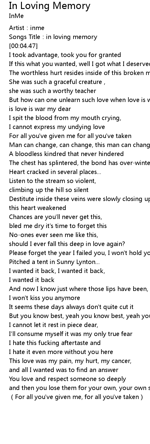 | [03:36.53] | (For all you've given me, for all you've taken) |