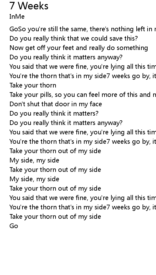 You're the thorn that's in my side7 weeks go by, it's so hard to say goodbye