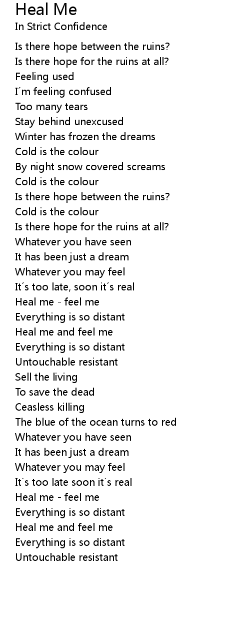 | Heal me and feel me | |