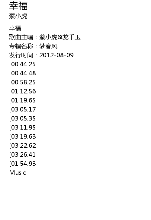 | [00:04.36] | 歌曲主唱:蔡小虎&龙千玉 |