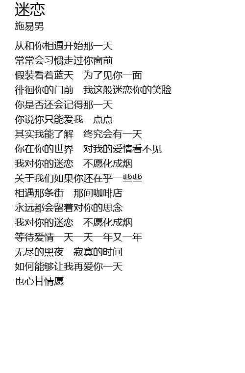 | 徘徊你的门前 我这般迷恋你的笑脸 | |