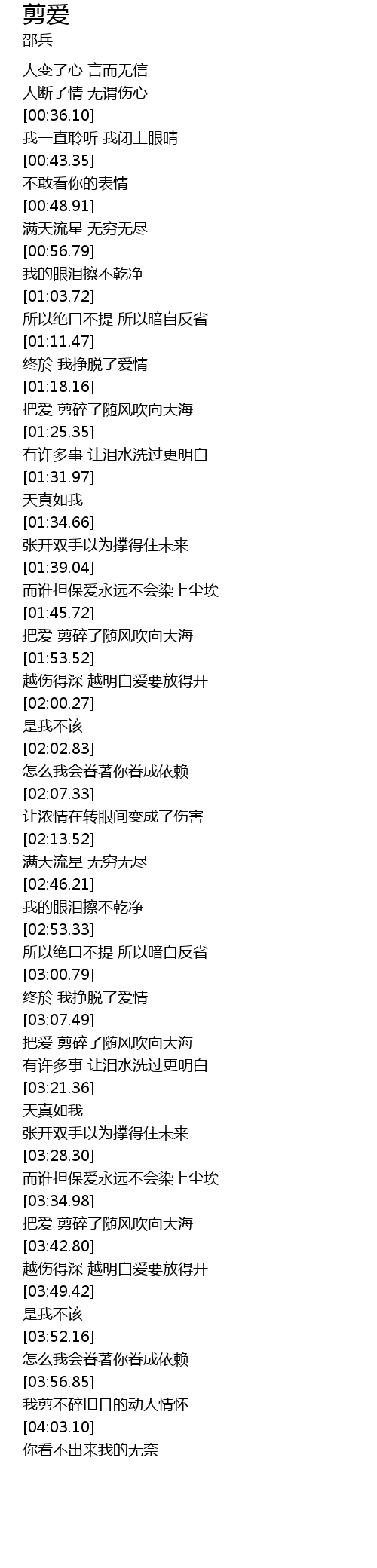 | [01:46.92] | 把爱 剪碎了随风吹向大海 |