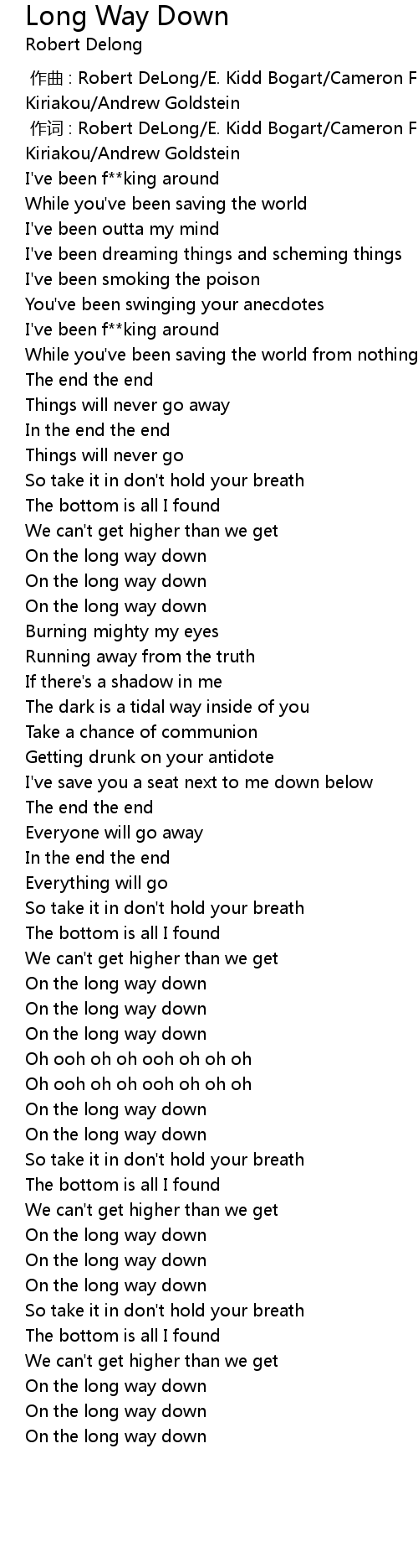 | [00:00.00] | zuo qu : Robert DeLong E. Kidd Bogart Cameron Forbes Emanuel Kiriakou Andrew Goldstein |