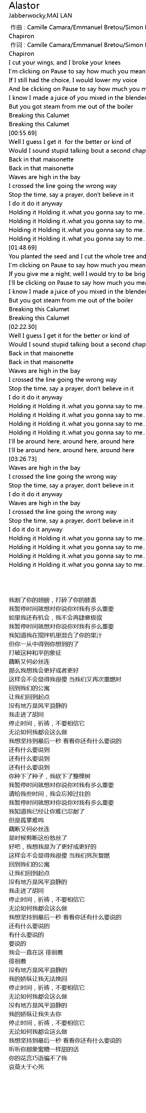 | [02:40.98] | 停止时间,祈祷,不要相信它 |