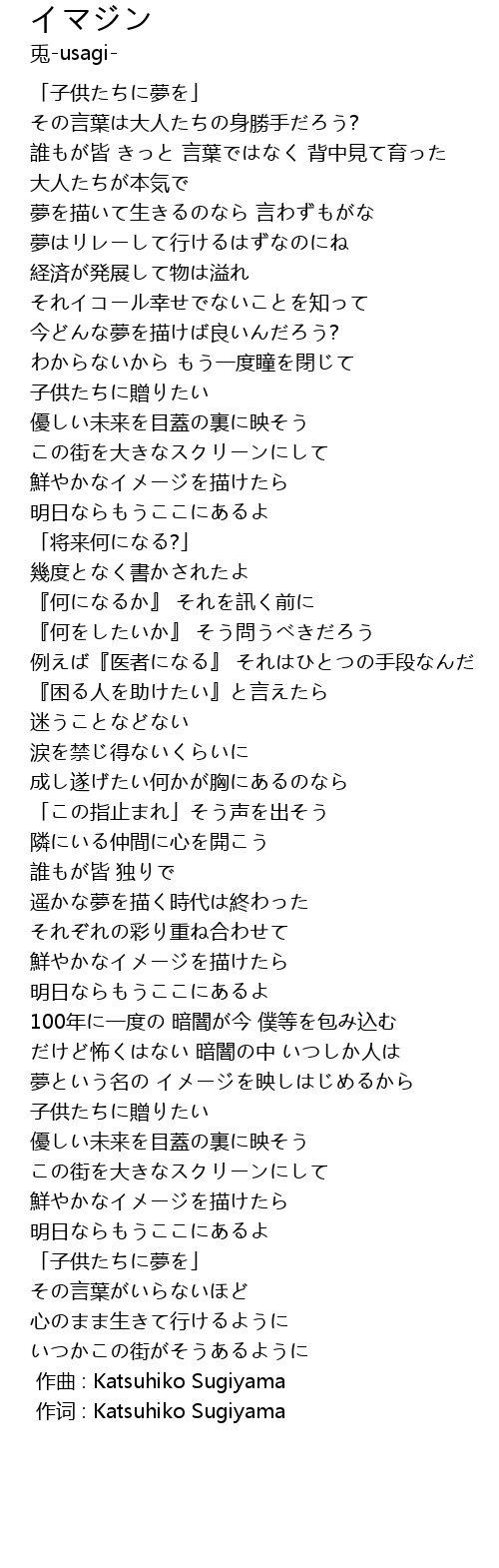 | [00:00.00] | 作词 : Katsuhiko Sugiyama |