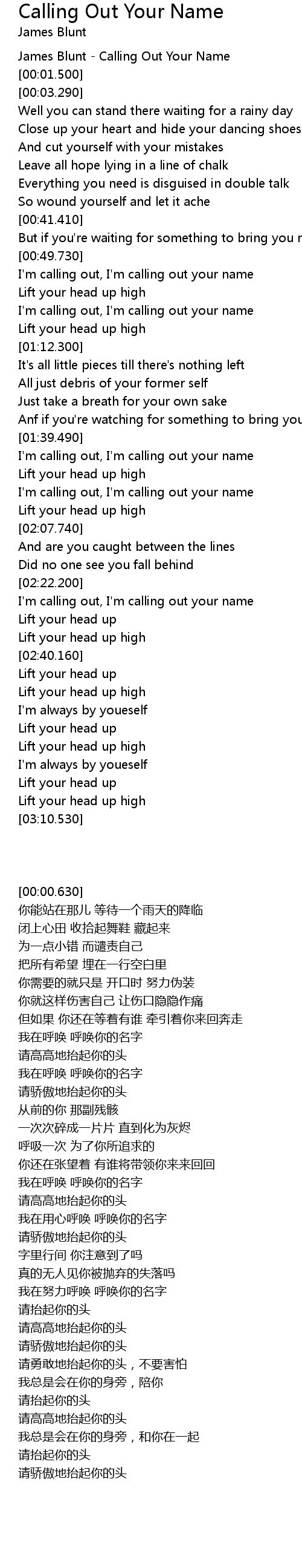 James Blunt - Calling Out Your Name |
