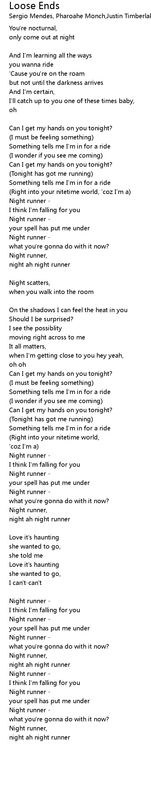 (Tonight has got me running) |