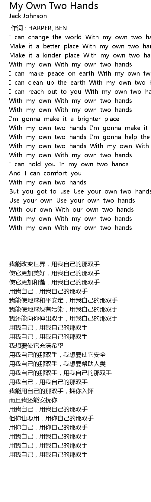 | 歌曲 | My Own Two Hands |