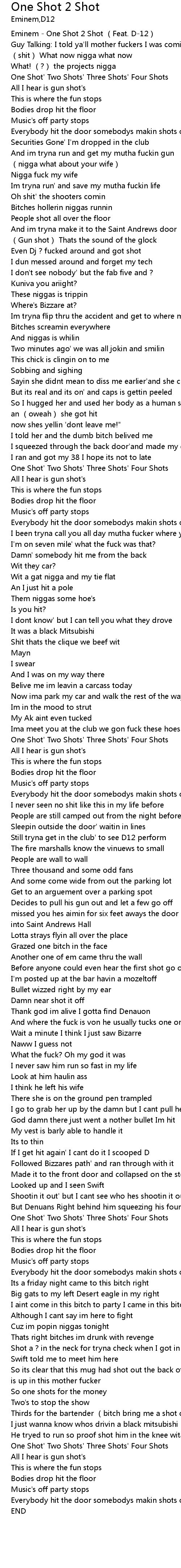| [00:00.81] | Eminem - One Shot 2 Shot (Feat. D-12) |