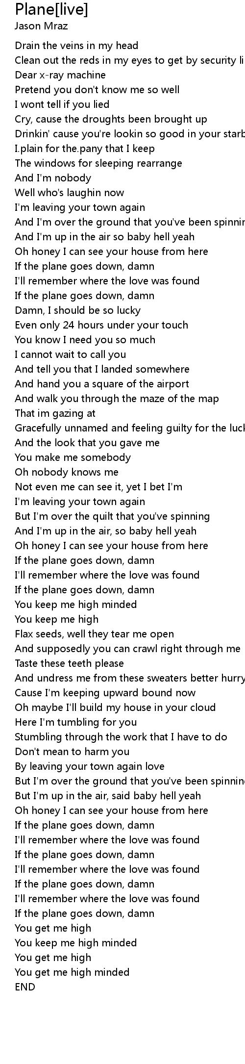 If the plane goes down, damn |