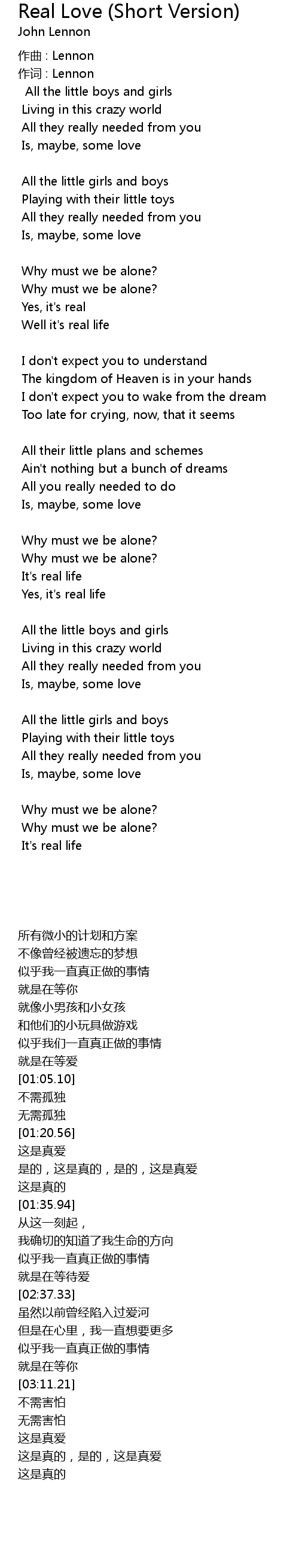 | 歌曲 | Real Love (Short Version) |