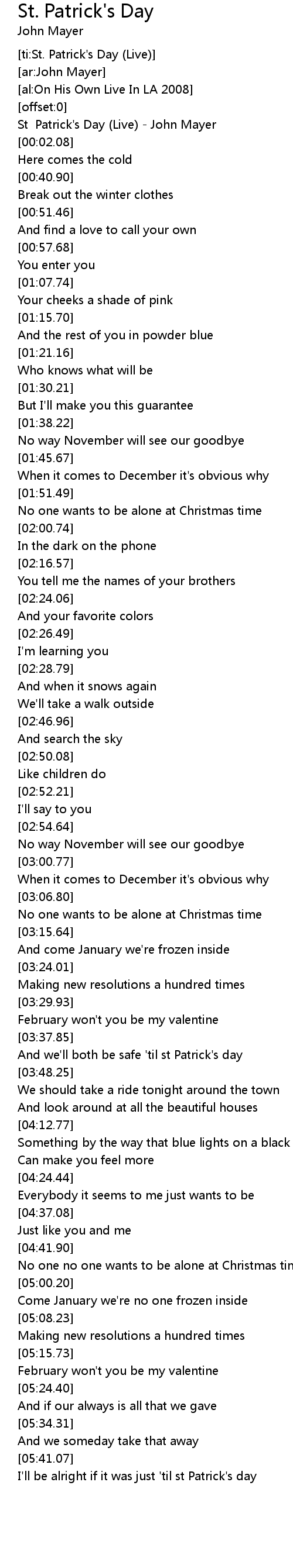 [ti:St. Patrick's Day (Live)] |