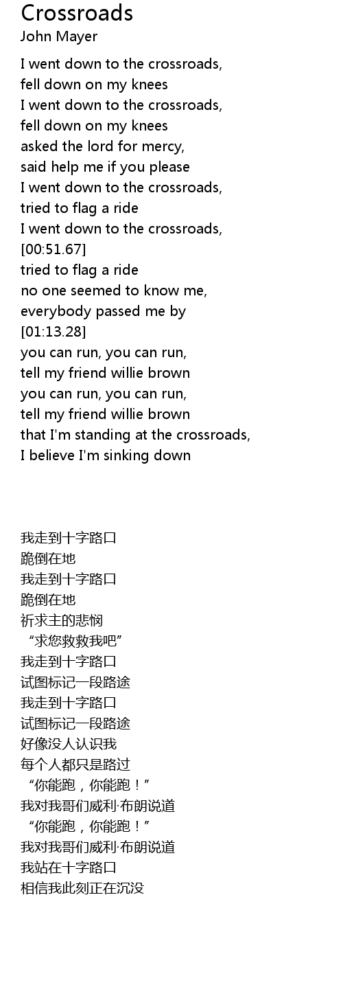 that I'm standing at the crossroads, |
