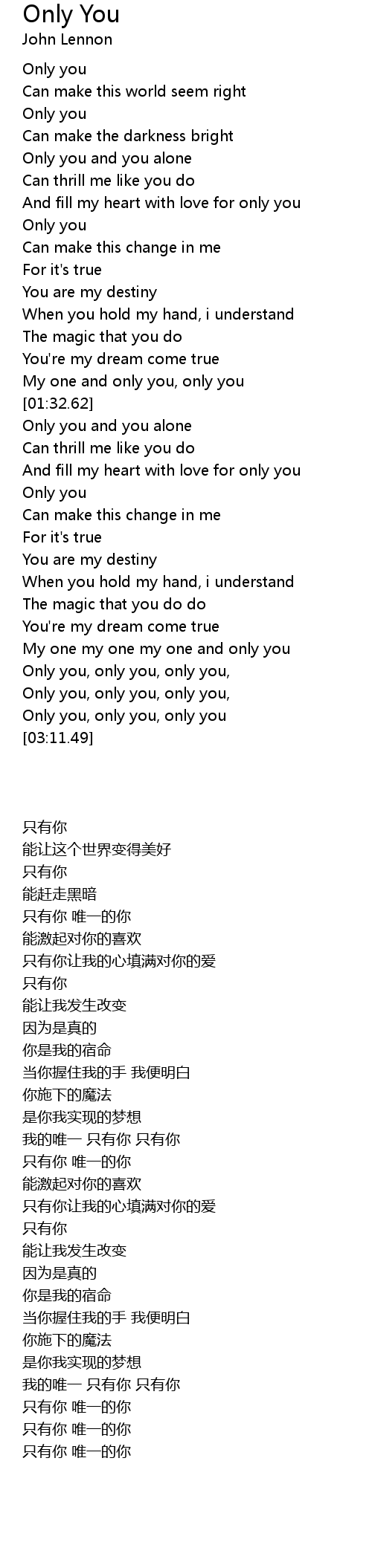 Only you, only you, only you, |
