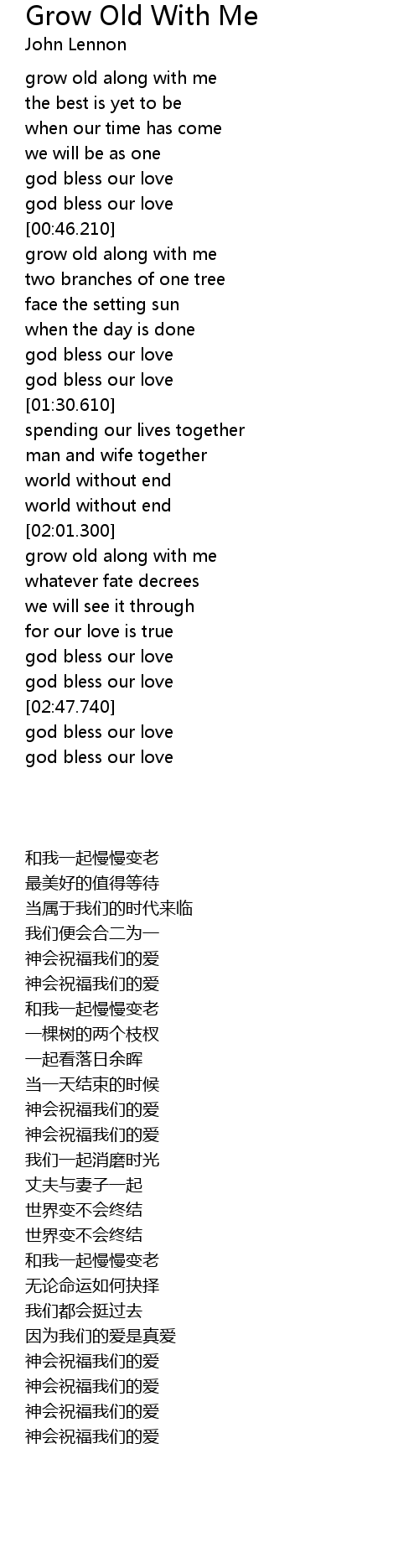 | [02:13.330] | 和我一起慢慢变老 |