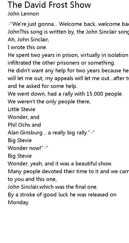 -"We're just gonna... Welcome back, welcome back with John and Yoko, Yoko and JohnThis song is written by, the John Sinclair song, who wrote that song?-" |