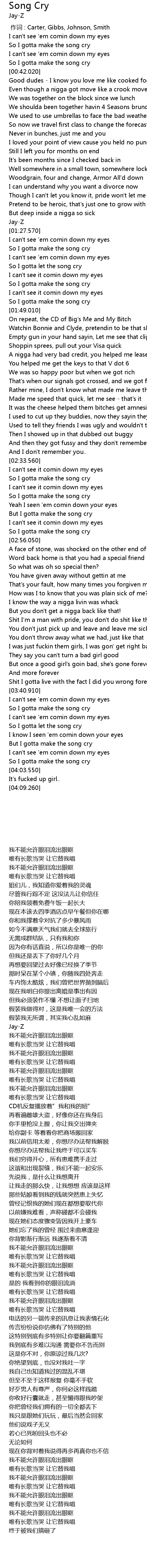 | [00:40.700] | So I gotta make the song cry |