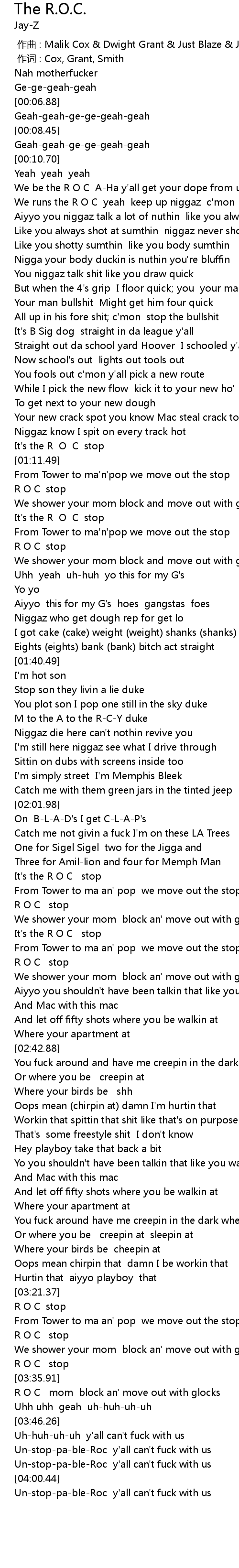 | [04:03.66] | Un-stop-pa-ble-Roc y'all can't fuck with us |