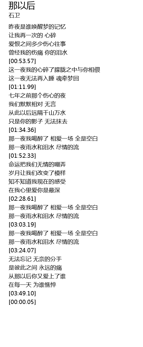 | [03:36.23] | 从那以后你又爱上了谁 |