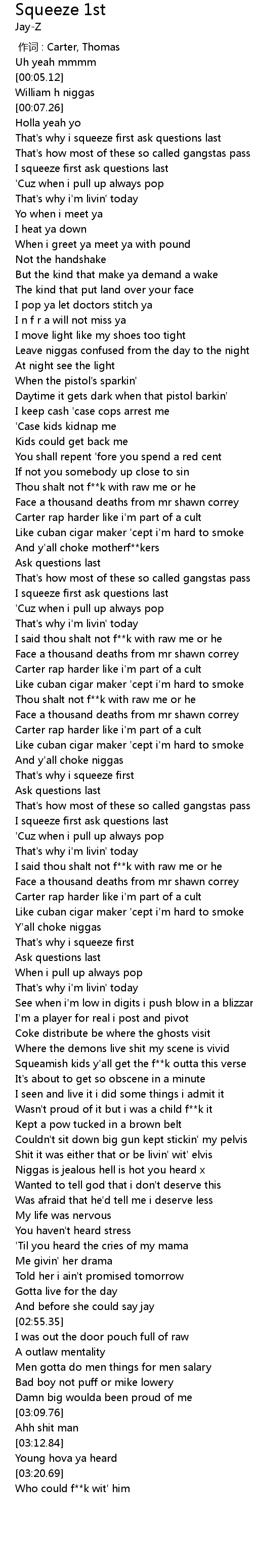 | [00:11.85] | That' s why i squeeze first ask questions last |