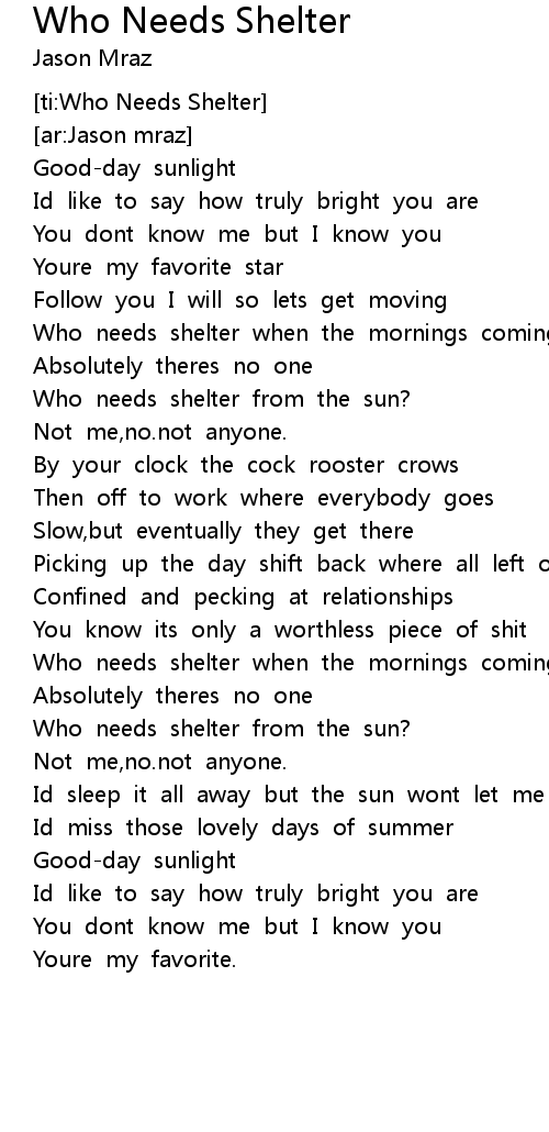 [ti:Who Needs Shelter] |