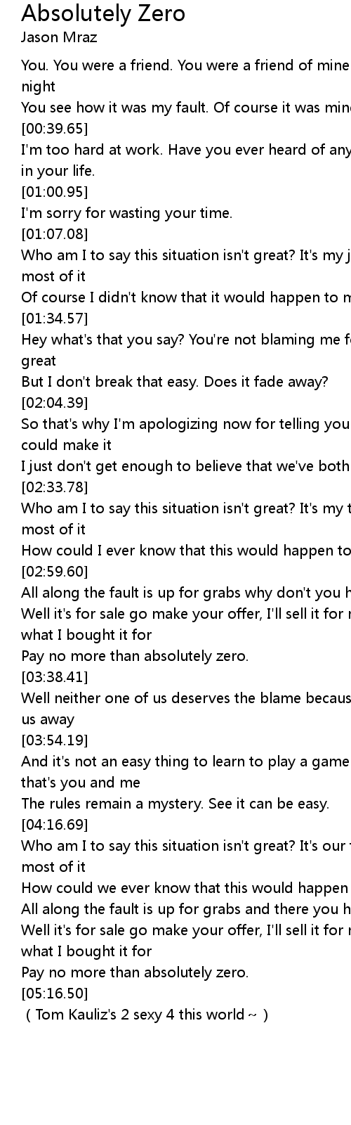 | [05:17.23] | Tom Kauliz' s 2 sexy 4 this world |