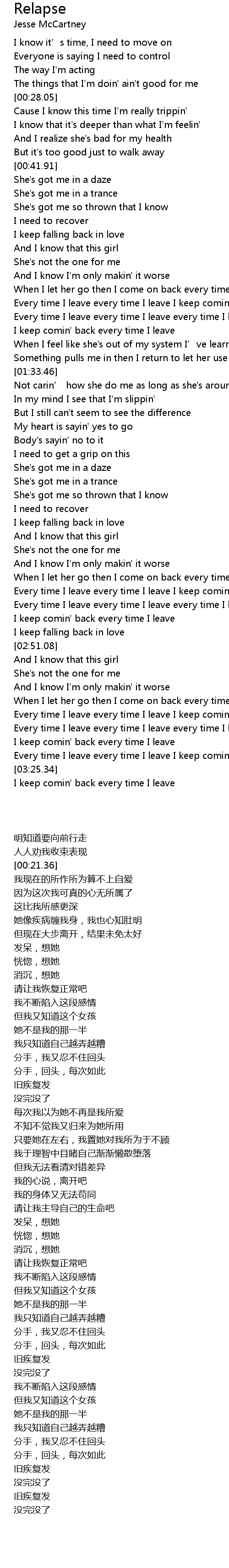 | [03:19.74] | Every time I leave every time I leave I keep comin' back |