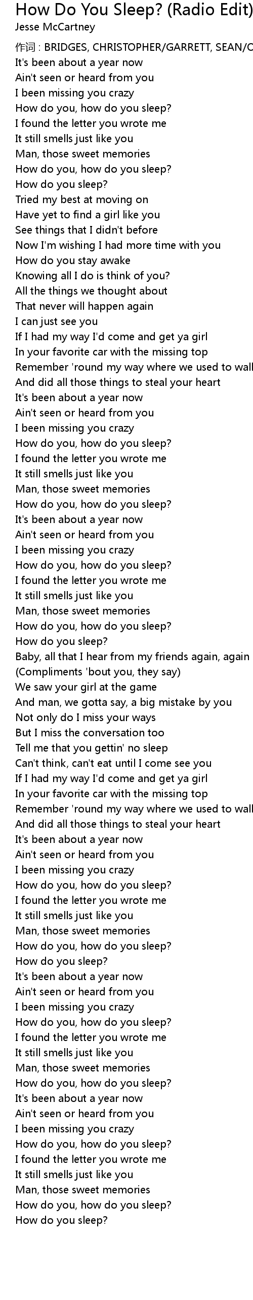| 歌曲 | How Do You Sleep? (Radio Edit) |