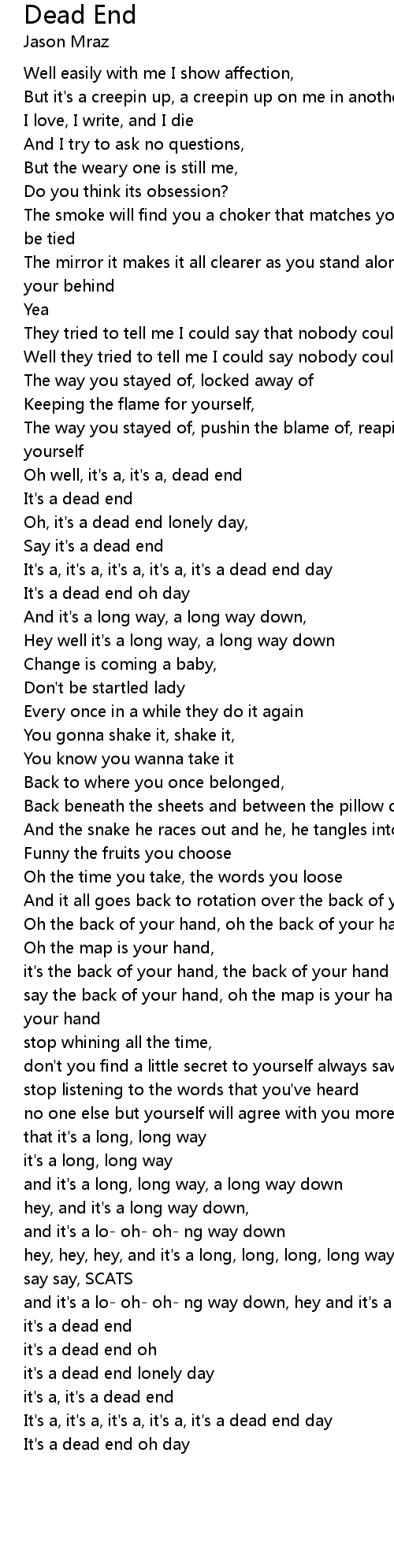 It's a, it's a, it's a, it's a, it's a dead end day |