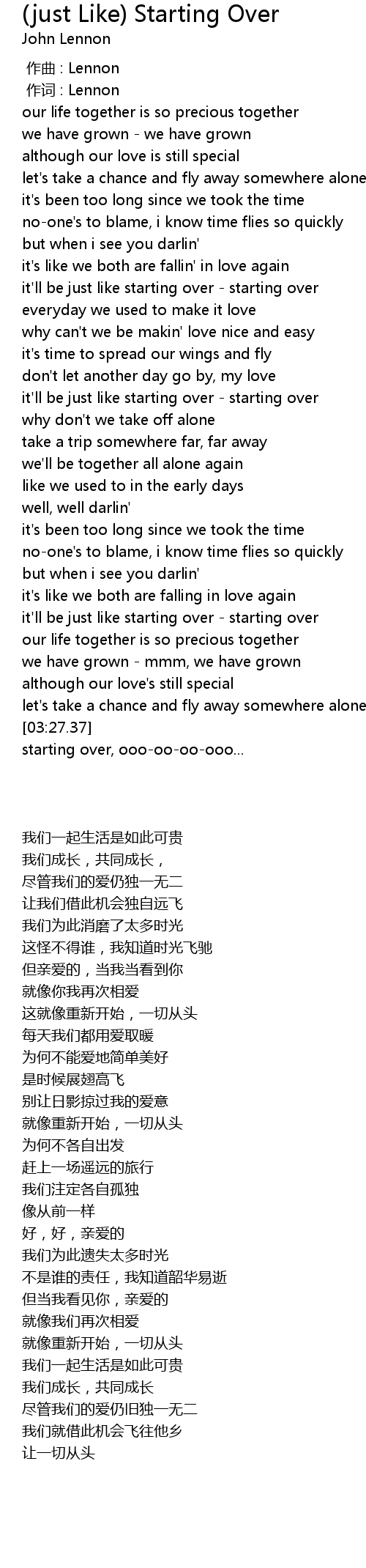 | [01:38.16] | it'll be just like starting over - starting over |