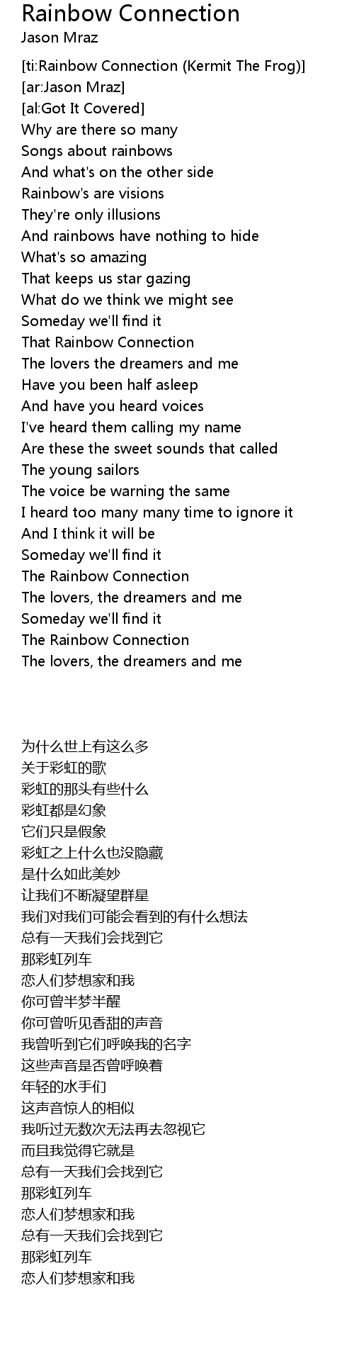 [ti:Rainbow Connection (Kermit The Frog)] |