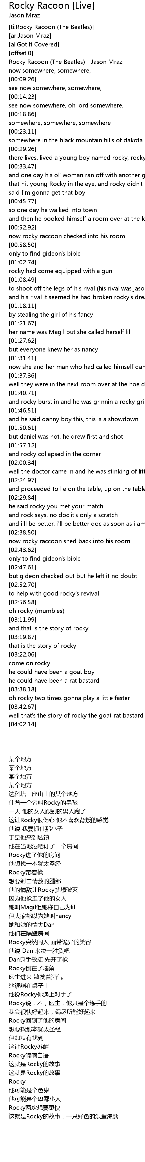[00:00.39] Rocky Racoon (The Beatles) - Jason Mraz
