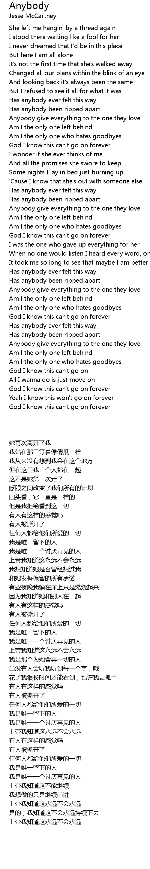 But here I am all alone |
