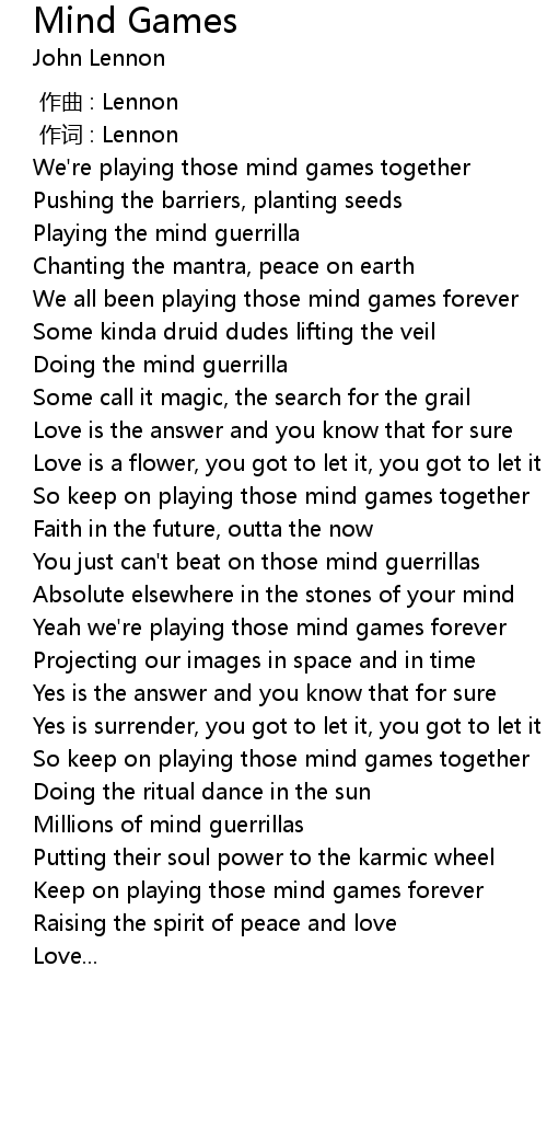 | 歌曲 | Mind Games |